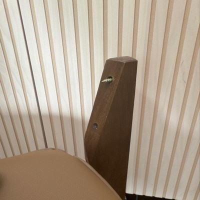 Dine in mid-century style with the Afton dining chair. Made in Malaysia, the Afton is constructed from walnut brown finished wood that exudes visual warmth. The backrest and seat are padded with plush foam and upholstered in smooth faux leather for superb comfort with every meal. Requiring assembly, the Afton utilizes slim, angled legs for stable support with a retro touch. With its chic, casual design, the Afton dining chair is an easy addition to any space.