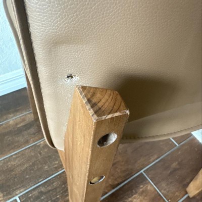 I really wanted to like these! The first set came damaged and I just received and tried to put together the replacement set. I got to the last step and can’t figure out how to attach the seat?! There are holes from the bottom that the screws are supposed to go in, but they don’t go all the way through to attach to the seat. There are also not holes in the bottom of the seat cushion to be able to attach it to? Very strange. Please let me know if there is a solution because it is very frustrating to have to take it all apart and once again box it up to send back.