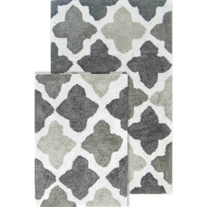 Inspired by Moroccan tiles, this two-piece bath rug set enriches any space with a subtle, yet eccentric style. Plush fabric cushions your feet for pure comfort, while a water-absorbent construction ensures lasting quality. Available in 4 natural, soothing tones. Machine tufted from 100% cotton with a lightly sprayed anti-skid back. Set includes one-21"x34"bath rug and one-17"x 24" bath rug.