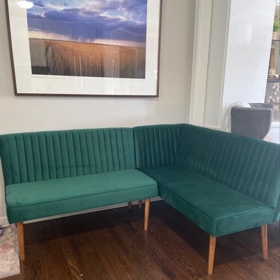 Take a moment to indulge in casual get-togethers with the carefree nature of the Alvis banquette set. Made in Malaysia, this set includes one corner bench and one armless bench, each comprised of a solid wood frame upholstered in luxurious velvet fabric. Channel tufting creates an exquisite geometric display that highlights the rich tones of the velvet. The Alvis requires assembly and features angled legs for excellent stability and support. Building a wonderful arrangement in any dining space, the Alvis banquette set enriches any occasion. Overall 2-Seater Sofa Bench(Left) Dimensions: 44.90" W x 25.00" D x 32.10" H; 2-Seater Sofa Seating Area Dimensions: 44.90" W x 17.90" D x 17.90" H; Overall Corner Bench(Right) Dimensions: 52.40" W x 25.00" D x 32.10" H; Corner Bench Seating Area Dimensions: 45.50" W x 17.90" D x 17.90" H; Corner Bench Arm: 32.10" H; Legs(both): 11.20" H; Back(both): 13.80" H;