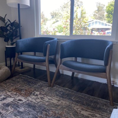 2pc Baron Fabric Upholstered and Wood Living Room Accent Chair Set - Baxton Studio