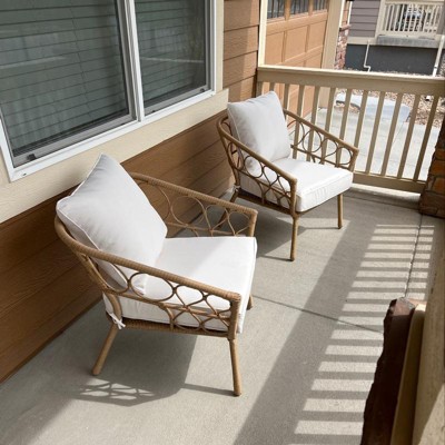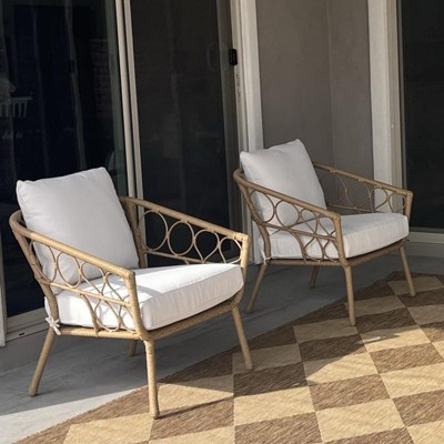 - Set of 2 outdoor club chairs offers a relaxed addition to your patio seating area