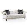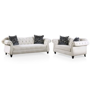 Accentuate your stylish living space with an elegant sofa and loveseat set with rolled arms and deep button tufting. Both-Pieces are upholstered in a sensationally soft velvet-white fabric in a crisp white color, making it easy to blend with your existing decor. A gently curving backrest and bun style feet make for yet another element of luxury for this set, while this sofa and loveseat is ideal for both traditional or glam living spaces.