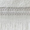 - Soft cotton terry with grey stripes, textured band and self fringe along hem