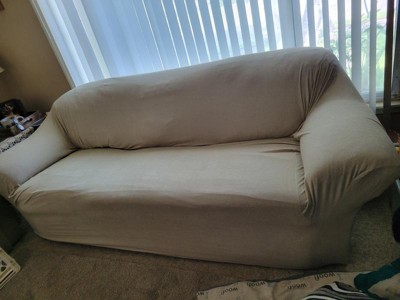 [This review was collected as part of a promotion.] This slip cover is such an easy way to upgrade my sofa! It looks great and feels soft, you honestly wouldn’t even know it was a cover on my sofa unless I told you! When I first put it on my husband thought I bought a new sofa, we really enjoy and was easy to put on.