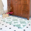 The Double Quatrefoil Bath Rug Set brings a luxury spa feel to your bath. From the elegance of the white double quatrefoil pattern to the gentle and subtle green in the background, this is a perfect choice for your bath decor. The soothing nature of these bath rugs can heighten the level of comfort in your bathroom experience.