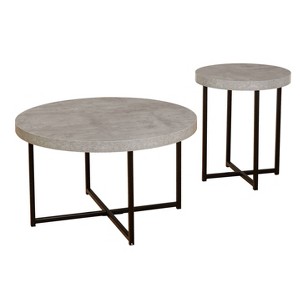 Buylateral 2pc Era Round End Coffee Table Gray: Minimalist, Industrial Style Living Room Set