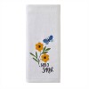 Welcome spring with this cheerful hand towel set. This two-piece set features a soft velour finish with "Hello Spring" embroidery, a butterfly, and 3D appliqué flowers. They can be used in the bath or kitchen and also make a fun host or hostess gift.