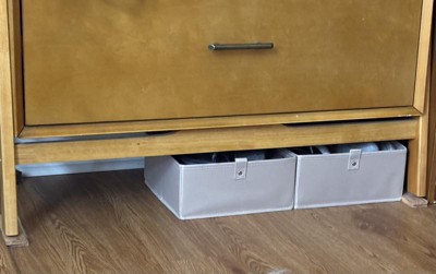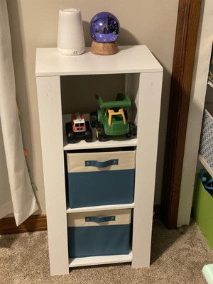 This RiverRidge storage bin set brings order to chaos. These versatile organizer bins are ideal for toy organizers and storage in play rooms or kids' rooms. Each bin measures 10.5 in. W x 10.5 in. D x 5 in. H, providing ample space for stuffed animals, games, and more. The durable 600 Denier Polyester Canvas construction ensures long-lasting use, while pull handles on two sides make moving and carrying a breeze. Our bins fit seamlessly with RiverRidge storage furniture (sold separately) for a cohesive look. Our storage baskets adapt to your needs. These collapsible storage bins feature removable bottom inserts, allowing them to fold flat when not in use. Ideal for closet organization, use them to store shoes, hats, or small household items. The versatile design makes our bins suitable for various rooms, from mudrooms to nurseries. Available in bold and neutral colors, this set of two half size storage baskets adds both functionality and style to any space in your home.
