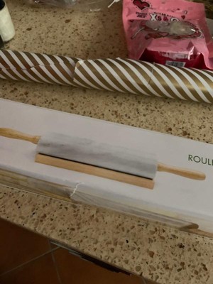 [This review was collected as part of a promotion.] Solid marble roller has a nice heft with a smooth roll. Well built, sturdy handles allow for easy manipulation. Wood rack looks great displayed on the counter; would recommend!