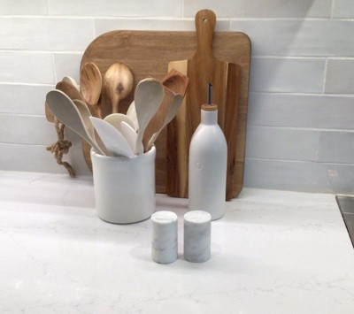 2pc Marble Salt and Pepper Shaker Set - Threshold™: Off-White, Spot Clean, Tableware, 2 Pieces