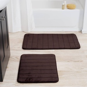 2pc Memory Foam Striped Bath Mat Set Brown - Yorkshire Home: Microfiber, Machine Washable, Non-Slip Backing