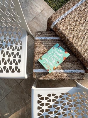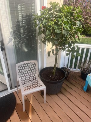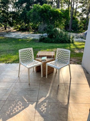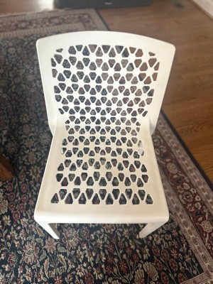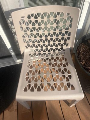 [This review was collected as part of a promotion.] These chairs are a great addition to my back porch. They are lightweight and pretty portable, they also stack like a dream for storage. The little design adds a nice touch but I will say I don’t like to sit cross cross on it (which I have a habit of doing) since it digs into my ankles. Nonetheless, beautiful and durable!