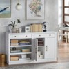 Create an inviting environment adding extra storage space with the 2pc Monza Modular Dining Cabinet Set by Lifestorey. This set is part of the Monza Collection, designed to offer flexible and multi-functional storage space for the dining room or kitchen. The cabinets offer two drawers that are a convenient place for flatware, utensils, or linens. Behind the two-doors is an adjustable shelf for storing various sized items, while the open shelves are ideal for dishware and displaying decorative pieces. The cabinets feature faux marble tops with brass handles and knobs for an added level of sophistication. Customize your space and storage requirements with other Monza cabinet components (sold separately) to create the best configuration that suits your needs. Constructed of MDF, in a white finish with a modern inspired farmhouse design.