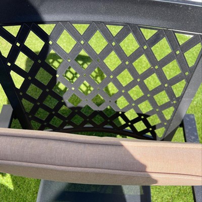 2pc Patio Swivel Rocker Chairs - Black - Captiva Designs: Outdoor Metal Furniture with Beige Cushions