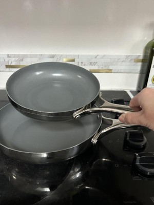 - 2pc stainless steel pans with nonstick ceramic surfaces