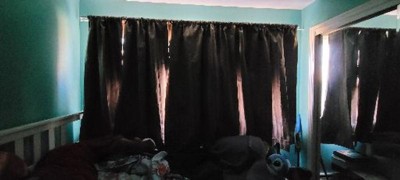 [This review was collected as part of a promotion.] I was sent this item complimentary from Influenster in exchange for my honest review. This window is right next to my bed. My previous curtains let in so much light from passing traffic and street lights that it made it difficult to sleep. I will be getting much better sleep now thanks to these curtains. Kind of wish it was one piece rather than two that have to overlap, but that's just a personal preference.
