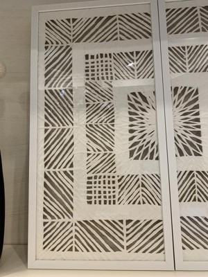 Elevate your home decor with our Madison Park Tala Framed Geometric Rice Paper Panel 2-piece Shadowbox Wall Decor Set. This shadow box set features a geometric design made from natural rice paper material, creating the perfect update of a soft global touch with a modern flair. Casted under glass and finished with a neutral frame provides a soft touch and rich dimension sure to draw anyone's eye with its organic beauty. 2 D-rings are finished on the reverse of each piece making this set easy to hang; simply hang side by side intimately along with other decor for a gallery look or add some space in between for a more focus piece to fill any wall space.