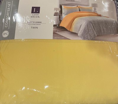 2pc Twin Glitter Ombre Metallic Print Kids' Comforter Set Yellow/Gray - Lush Décor: Kids Bedding, Microfiber, Abstract Pattern