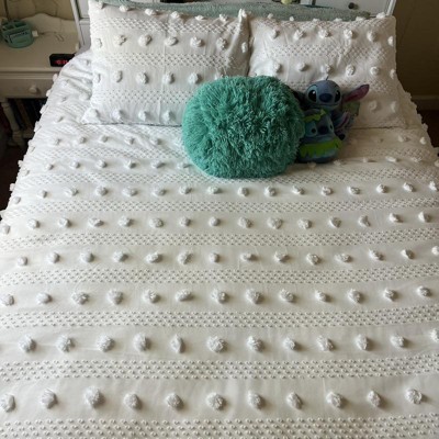 Refresh your bedroom with the elegant style of Intelligent Design's Lucy Clip Jacquard Duvet Cover Set. This beautiful duvet cover features fun and playful clip jacquard pompoms all over the face that add dimension to the top of the bed for a lovely look. The matching shams also flaunt the delicate design of the duvet cover to complete the jacquard bedding set. Machine washable for easy care, this elegant duvet cover set is OEKO-TEX certified, meaning it does not contain any harmful substances or chemicals to ensure quality comfort and wellness. An antimicrobial treatment helps reduce the growth of odor causing bacteria and keeps fabric lasting longer. A button closure at the foot end allows you to place a padded insert within the duvet cover and internal corner ties prevent it from shifting (Insert is NOT included).