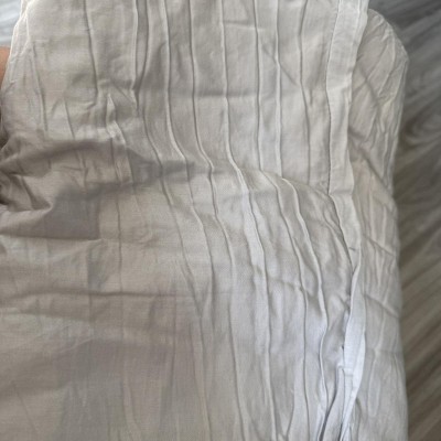 I usually reach for threshold sheets when shopping for sheets so ordering this was a no brainer for me however, when I received it in the mail it kinda grossed me out. I have always bought them in store so I’m familiar with the packaging and what it looks like straight from the box. These sheets were missing that outer layer of packaging and were just put in this little clear bag and the only tag on it was attached to the plastic bag. It was obviously wrinkled but not the typical packaged up wrinkled it’s as if someone had washed it and dried it and then returned it…. The sheets themselves are good and I really love the zipper closure for the duvet cover and shams but I would never buy them online again after this experience. Even after washing them I still get an ick when I remember how they showed up.