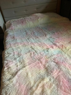 2pc Twin/Twin XL Kids' Emma Cozy Ultra Soft Ombre Faux Fur Comforter Set Rainbow - Lush Décor
