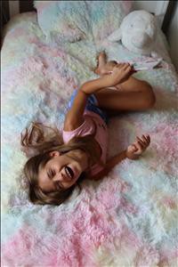 [This review was collected as part of a promotion.] This is such a cute and comfortable addition to a little girls room! The rainbow color is soft and and it has a matching pillow cover to complete the set. I asked my daughter if she agreed and she wanted to keep it for herself! The faux fur is soft, as well and it makes a great way to settle down with a book or to watch a show on TV.