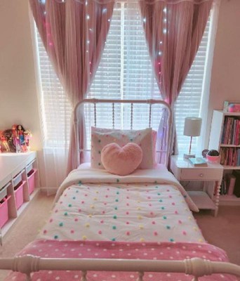 [This review was collected as part of a promotion.] I got this one, it looks A M A Z I N G on my daughter’s bedroom. It fits perfectly the color is beautiful with the little pompons on it. It matches with her bedroom decor. Excellent quality!!! I’m definitely thinking on buying the matching curtains.