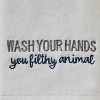 Add some fun and whimsy to your hand washing routine. This 2-piece hand towel set is made of soft cotton velour with "Wash your hands you filthy animal" embroidery. They can be used in the bath, kitchen or any space for washing hands. SKL Home brings personality, fun, and flair to the most intimate spaces in your home, with products ranging from bath accessories and shower curtains to towels, curtains, and beyond. Whether your style is upbeat and modern or classic and cozy, SKL Home provides a look to complement almost any décor. Combining 40+ years’ experience, global design inspiration, and premium fabrications, SKL Home continues to lead the way in home accessories.