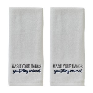 2pc Wash Your Hands Hand Towel Set - SKL Home: Cotton Terry, Midweight 450-550 GSM, Machine Washable