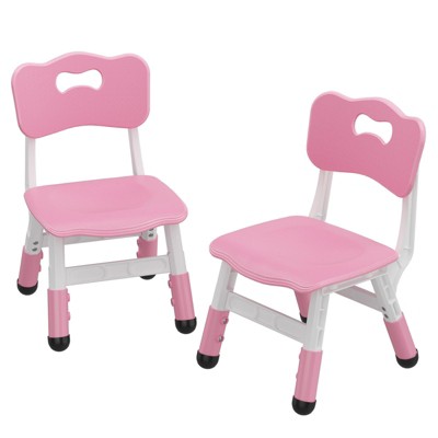This 2-piece kids chair set is height-adjustable with three levels (10.6, 11.4, 12.2 in), supporting children aged 3¨C8 up to 180 lbs as they grow. Ergonomically designed with a curved, breathable backrest, it promotes proper posture and comfortable seating for extended periods. Made from durable, lightweight polypropylene with soft rounded corners, each chair features non-slip feet and a carrying handle for safety and portability. Waterproof and easy to clean, they¡¯re also stackable for space-saving storage.