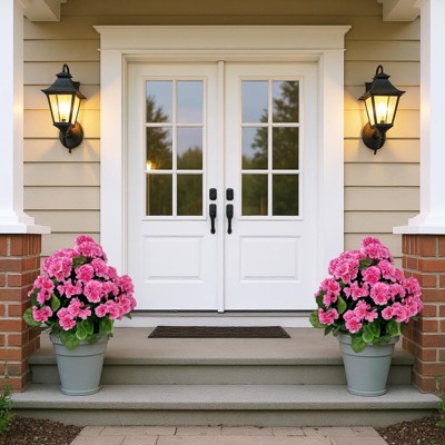 2PCS Artificial Begonias Bush with Ground Spike, 24Inch Artificial Outdoor Bushes Evergreen UV Resistant Shrubs- for Outdoor Indoor