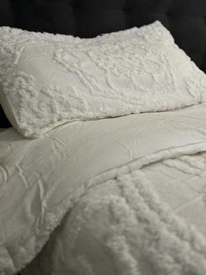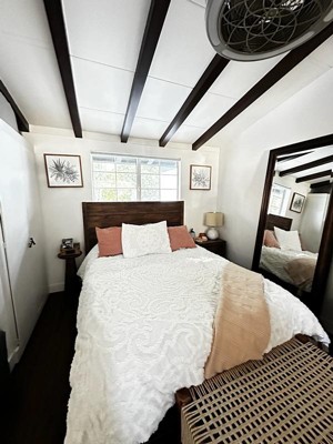 [This review was collected as part of a promotion.] This 100% cotton tufted comforter comes complete with pillow shames. It’s right in the neutral pallet that’s matches my master bedroom. Just hold up and snap a few times to fluff. Only thing is wish it came with a sheet set and throw pillows.