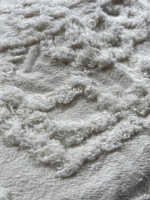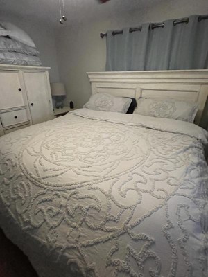 The Madison Park Laetitia Tufted Cotton Chenille Medallion Comforter Set provides an alluring shabby chic update to your bedroom. This globally inspired comforter features a 100% cotton face and reverse with a tufted chenille medallion centered on top of the bed. The 2 matching shams (1 in Twin/Twin XL) coordinate with the cotton comforter to complete the boho look. Perfect for all season use, this bedding set is also OEKO-TEX certified, meaning it does not contain any harmful substances or chemicals to ensure quality comfort and wellness. Due to the nature of the chenille fabric, some shedding will occur naturally in the first 3-4 washes. Items in the set may come in a rolled or compressed packaging, which will need to be fluffed up or steam ironed before use to remove wrinkles.