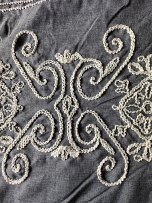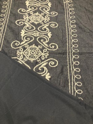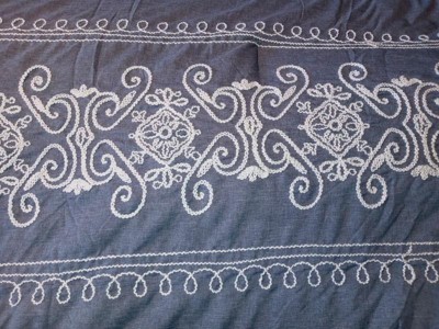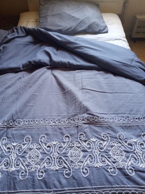 - Features beautiful white embroidery details towards the bottom of the comforter
