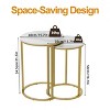 Enhance your home decor with this charming end table set, a perfect combination of white sintered stone tabletop with golden metal frames, appeals chic look yet adding artful punctuation to interior spaces. Lightweight design ensures portability and you can quickly move the set to the room you need.