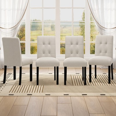 2Pcs Modern Wooden Accent Dining Chairs, Upholstered Armless Chairs with Padded Seat and Sturdy Wood Legs for Kitchen, Dining Room, Restaurant, Beige