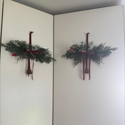 2pk 13" Cypress and Red Berry with Red Ribbon Mini Artificial Swag - Hearth & Hand™ with Magnolia