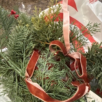 Really nice and easy way to dress up something for Christmas. I cut the red berries off. I was lucky finding one set in store