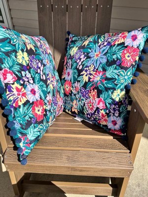 [This review was collected as part of a promotion.] These pillows are a colorful addition to my front porch rocking chair. I enjoy the bright colors and Vera Bradley design. They are comfortable for use. The poms aren’t my favorite and I’d prefer the look of the pillows without them.