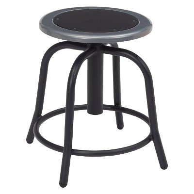 The fortified construction and soft comfort of the 6400-10 Series heavy-duty padded stools are ideal for hands-on educational settings like art rooms, science labs, home economics or shop classrooms. This reliable stool features a strong frame of 18-gauge steel tubing securely welded to a 14" diameter seat pan. Riveted through the steel pan are 1/2" -thick black vinyl cushioning that will provide years of dependable use. Footrest ring is securely bonded to each leg with four spotwell contact points.