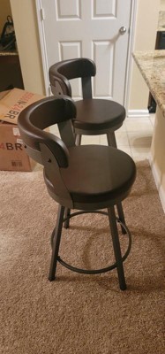 Inspire Q 2pk 24" Meilan Faux Leather Metal Swivel Counter Height Barstools White: Upholstered Round Seat, Easy Clean
