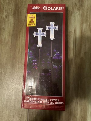 2pk 34" Solar Cross Pathway Lights - Alpine Corporation: Weather-Resistant, LED Garden Stakes