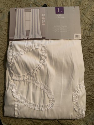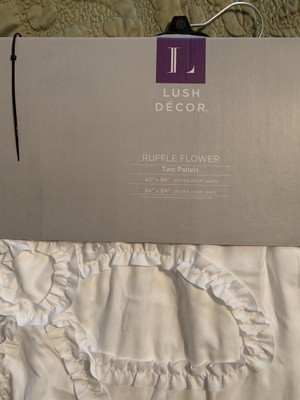2pk 42"x84" Light Filtering Ruffle Flower Curtain Panels White - Lush Décor: Modern Floral Microfiber, Rod Pocket