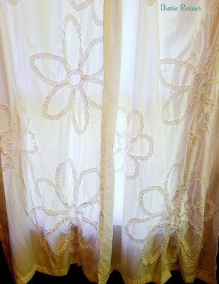 [This review was collected as part of a promotion.] I am very pleased with my new boho-chic curtains. I needed new window treatments for my guest bedroom and when I saw these, I knew they would be perfect. What initially caught my eye are the flowers. They look just as good in person and the detail in the ruffle stitching is well done. The white color brightens up the room, making it appear larger. This was a great choice as the curtains offer brightness, design and privacy.