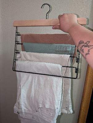 2pk 5 Tier Pant Hangers - Brightroom™: Multicolored Hardwood & Steel, Adult Clothes Hangers, 1 Year Warranty