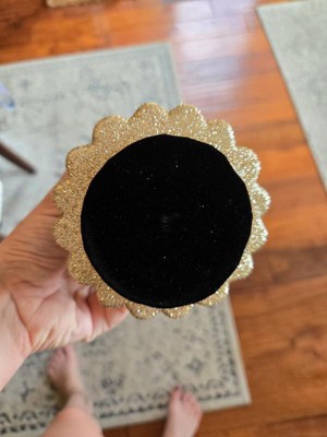 These gold glitter Christmas trees are such a simple, but elegant decoration! I am very excited to use them for the Holiday season this year! The glitter is gorgeous. These are very lightweight because they are made out of foam. My only concern is packing them away carefully so they don’t get punctured by other decorations. The bottoms have felt on them to protect your surfaces. Very cute and classy!