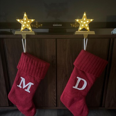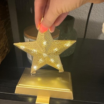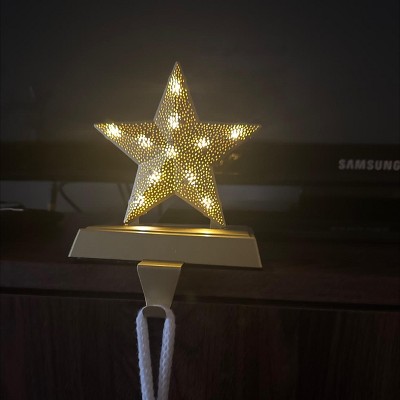 2pk Christmas Lit Metal Perforated Star Stocking Holder Gold - Wondershop™