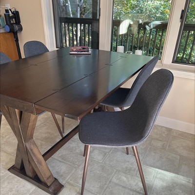 I’m very, very pleased with my purchase of the Copley midnight black, mid century modern dining chairs. I received them two-three days after ordering them. Attaching the legs was easy, peasy. They are so comfortable and enrich the look of my glass top rod iron base dining table. I definitely recommend them. They are perfect!