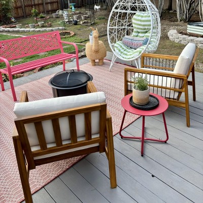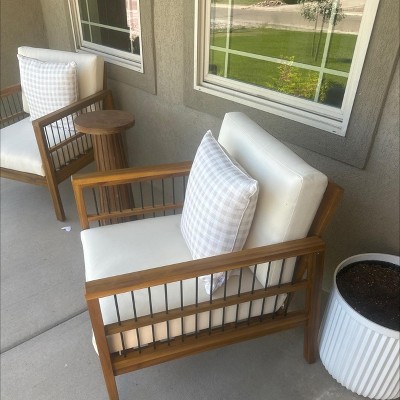 2pk Elias Outdoor Acacia Wood Club Chairs with Cushions Teak/Beige - Christopher Knight Home: Weather-Resistant, UV Protection, Iron Frame